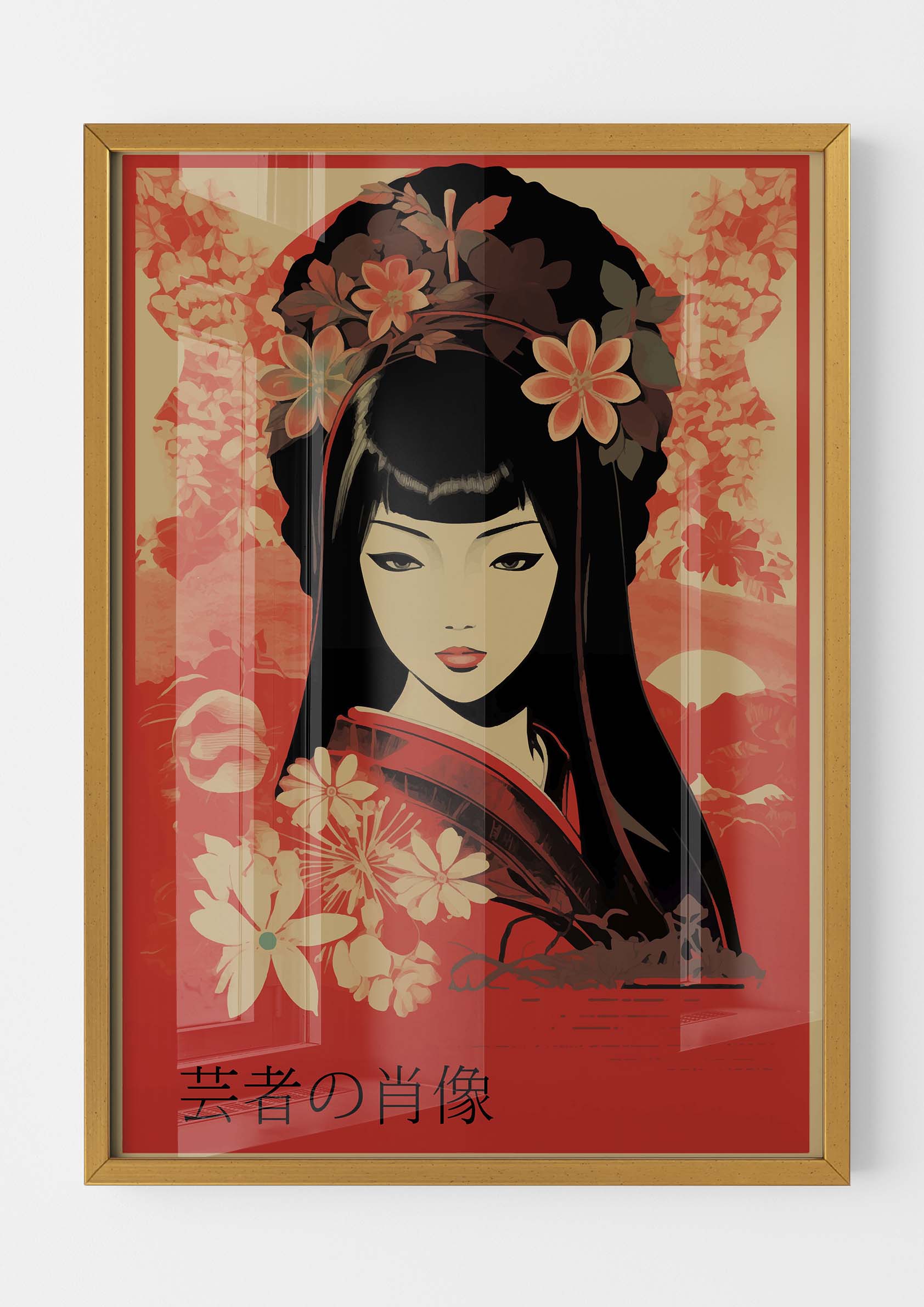 Una representación artística y elegante de una geisha en tonos cálidos y armoniosos. Con un diseño sofisticado y detalles florales, esta impresión evoca la belleza y la serenidad de la cultura japonesa. Perfecta para añadir un toque refinado a cualquier espacio.