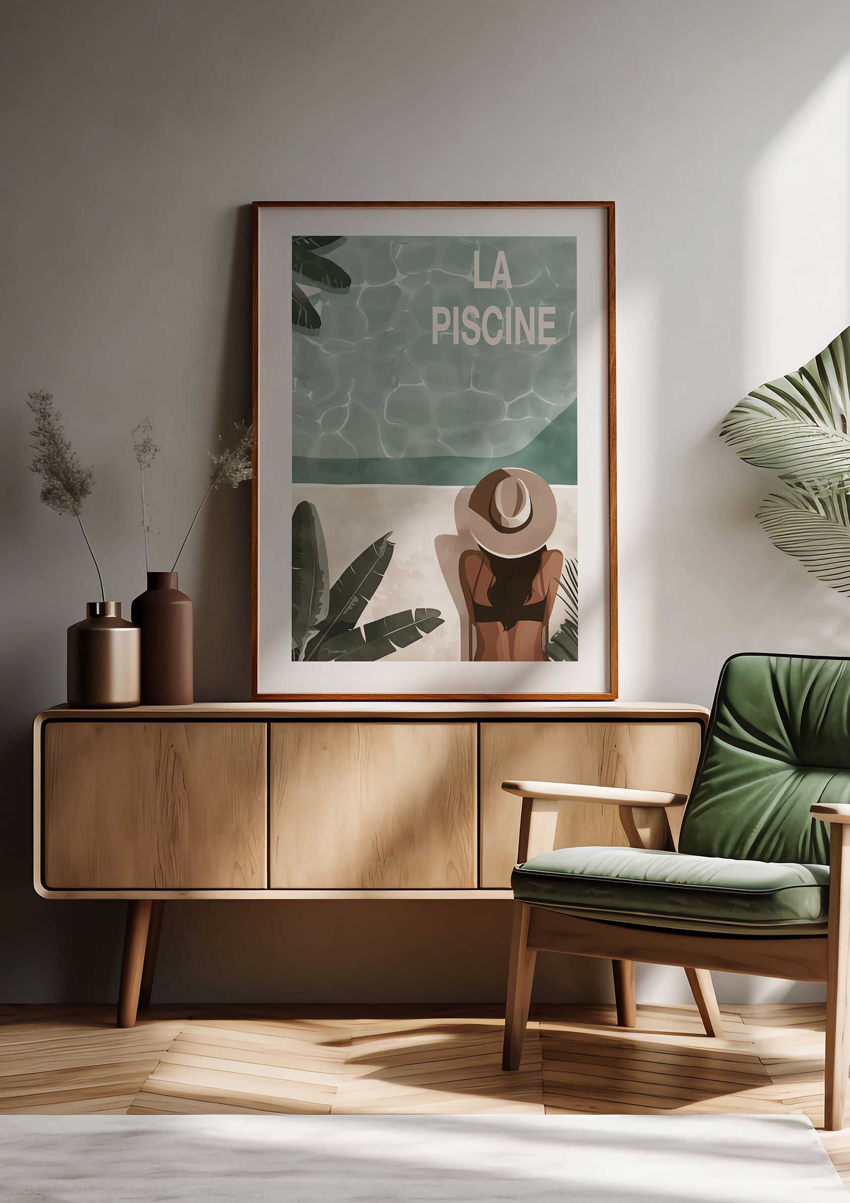 Sumérgete en la elegancia del verano con esta ilustración artística "La Piscine". Una escena cautivadora que evoca la tranquilidad de los días soleados, entre agua cristalina y momentos de relax junto a la piscina. Un toque de serenidad y escapismo para tu decoración.