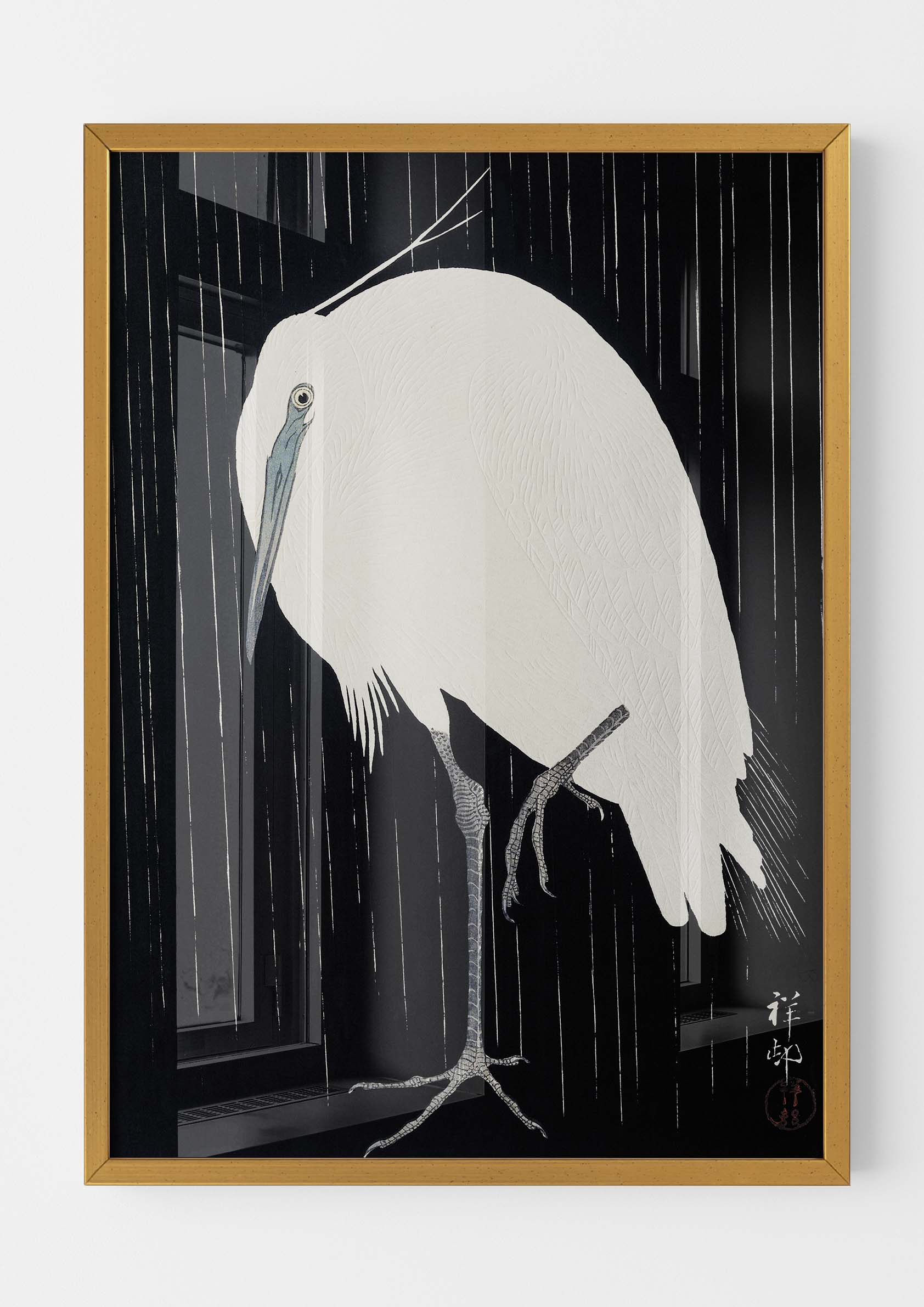 Lámina del célebre cuadro de Ohara Koson, “Egret in the Rain”. Disfruta de la belleza de esta obra de arte en tu hogar y contempla la majestuosidad de este elegante pájaro en medio de la lluvia. Una pieza única para cualquier amante de la naturaleza y el arte.