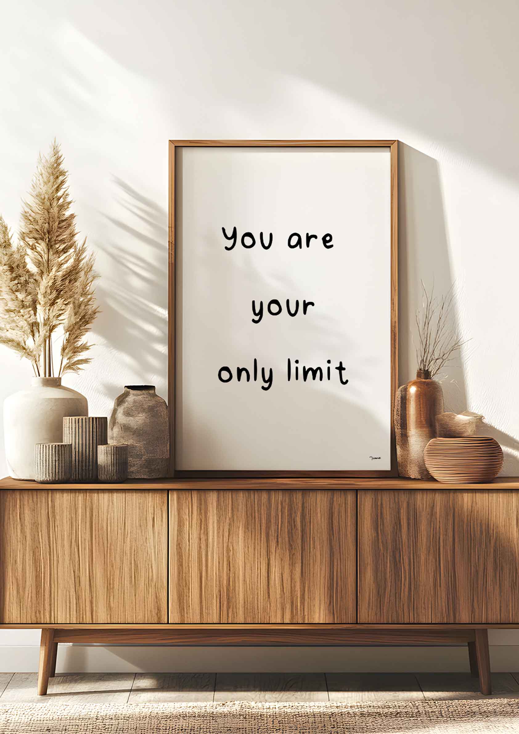 El lema "You are your only limit" es presentado en esta lámina con un fondo blanco. Motiva y recuerda que no hay límites para alcanzar tus metas. Con este diseño minimalista, podrás enfocarte en tu propio potencial sin distracciones.